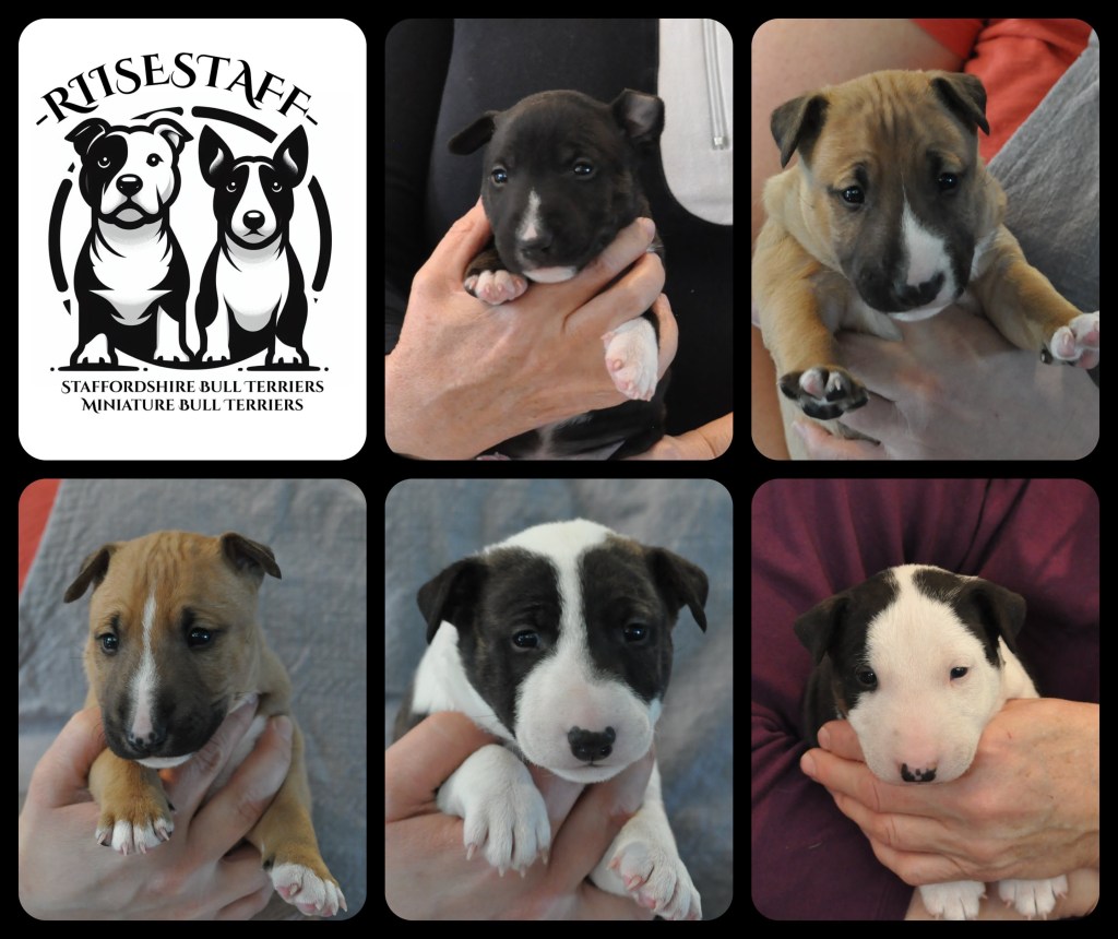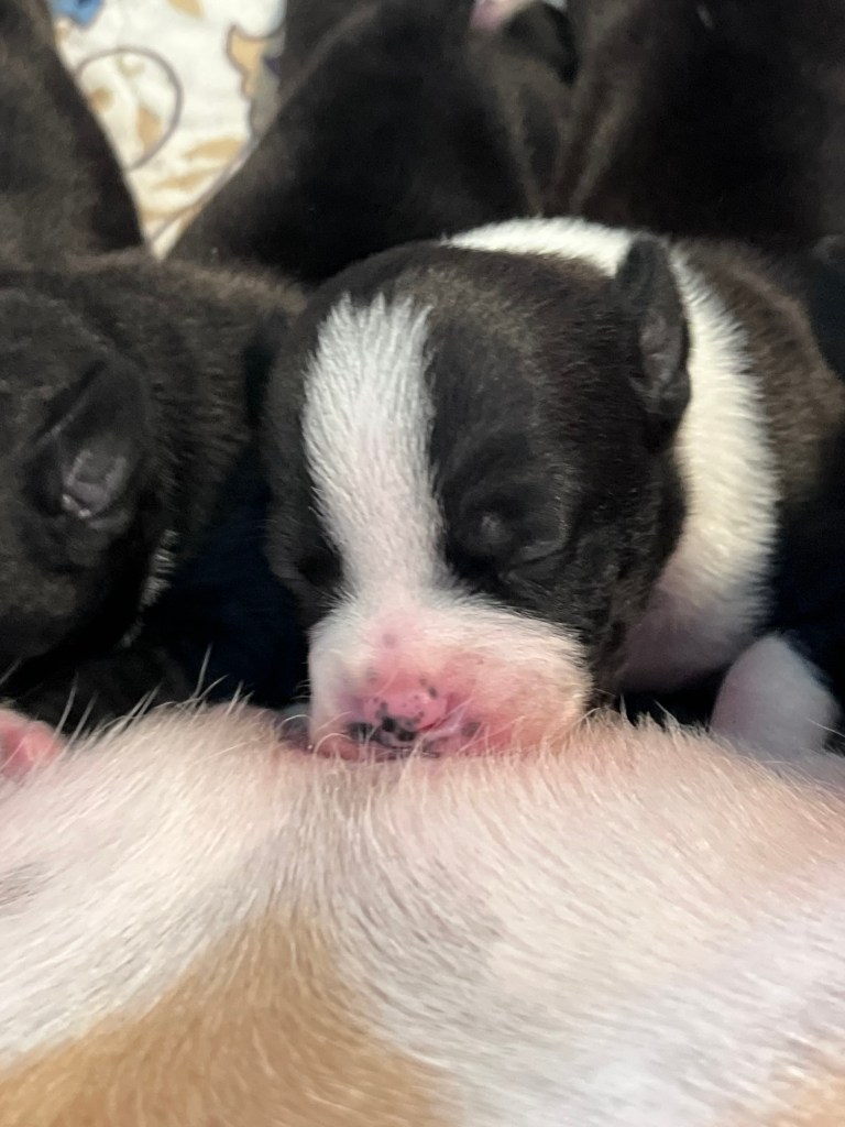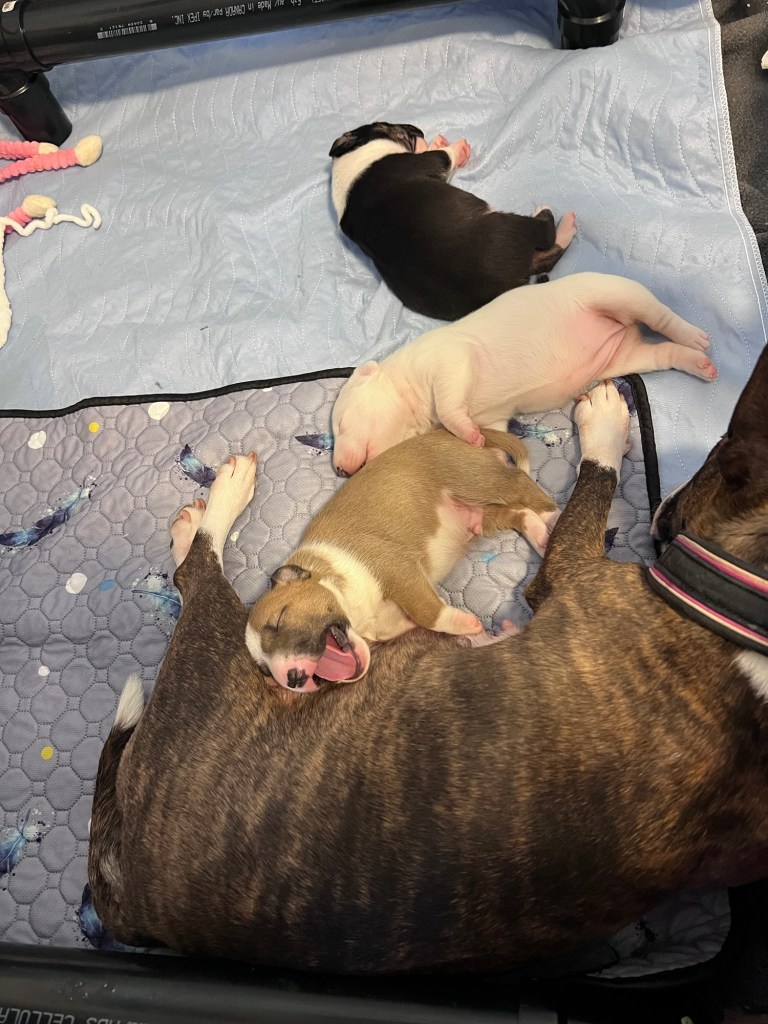 Staffordshire Bull Terrier puppies 6 days old September 18th 2024-available puppies, please email for more info riisestaff@gmail.com